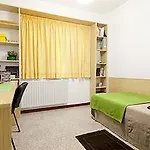 Vybavení v pokoji zahrnuje vnitřní dvorek, psací stůl a detektory kouře. V koupelně jsou sprcha, sušička a ručníky.